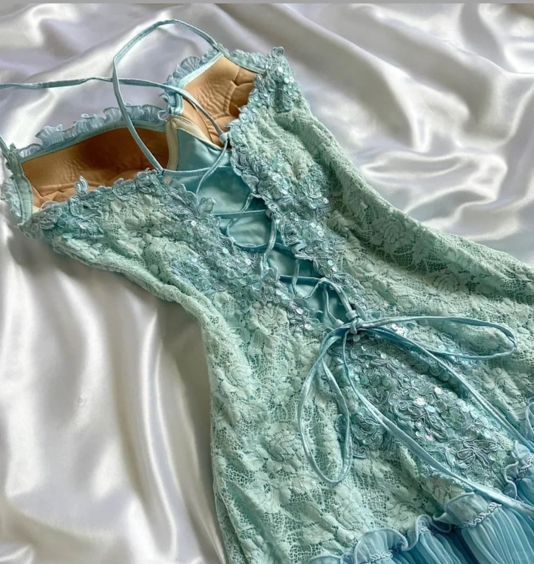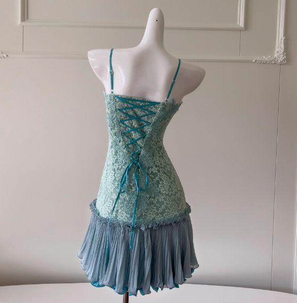 Sweet Tiffany Blue Spaghetti Strap Chiffon Party Dresses Lace Applique Short Prom Dresses Homecoming Dress HZ1108