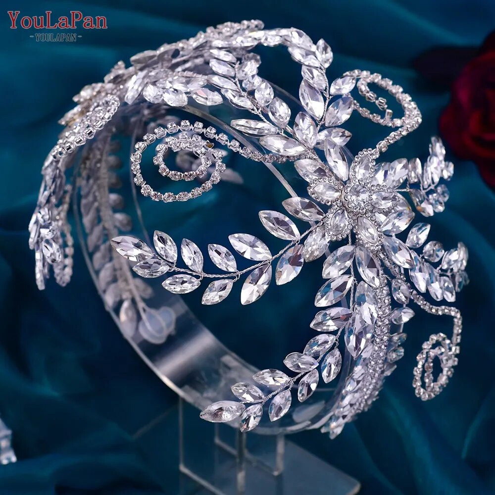 HP443 Bridal Headpiece Flower Bride Crown Wedding Hair Accessories Crystal Bridal Headdress for Pageant Party Headwear