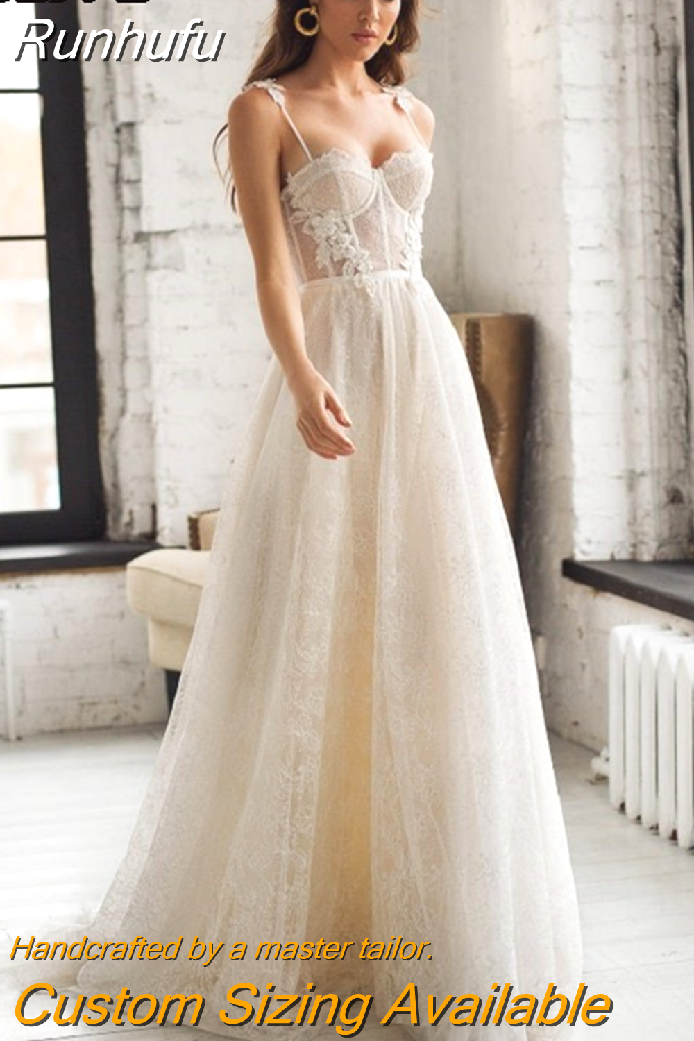 Spaghetti Straps Lace Appliques Boho Wedding Dress 2023 Corset Closure Elegant Sweetheart A-Line Bridal Gowns 925