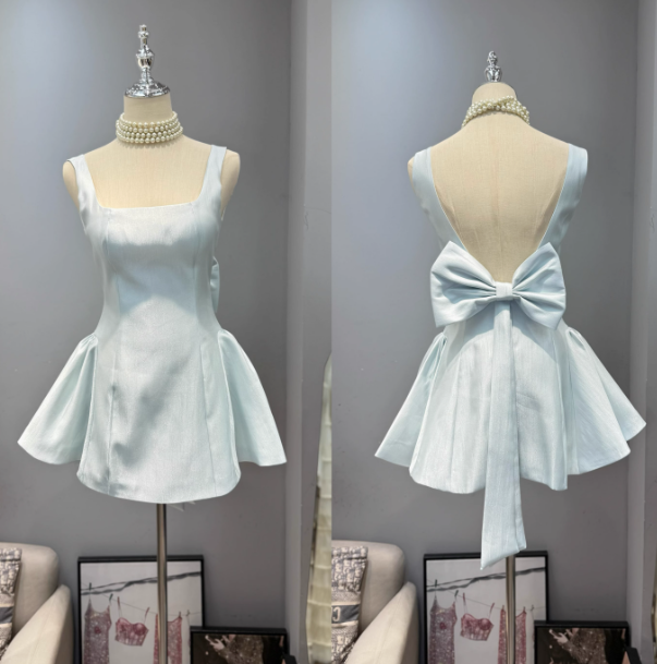 Cute Square Neck A-line Backless Birthday Dress Bow Short Prom Dress Sweet Homecoming Dress HZ1108
