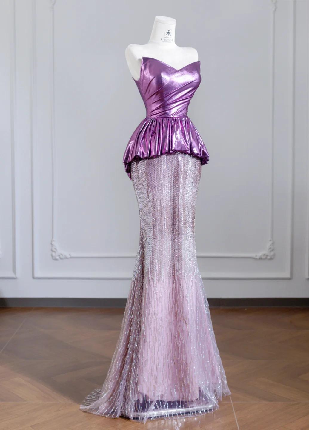 Cute Strapless Pink and Purple Mermaid Long Prom Dresses Elegant Evening Gowns HZ1108