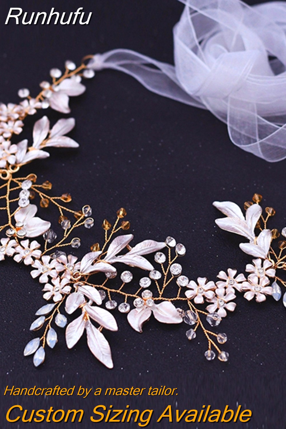 Material: Alloy leaf/milk rhinestone