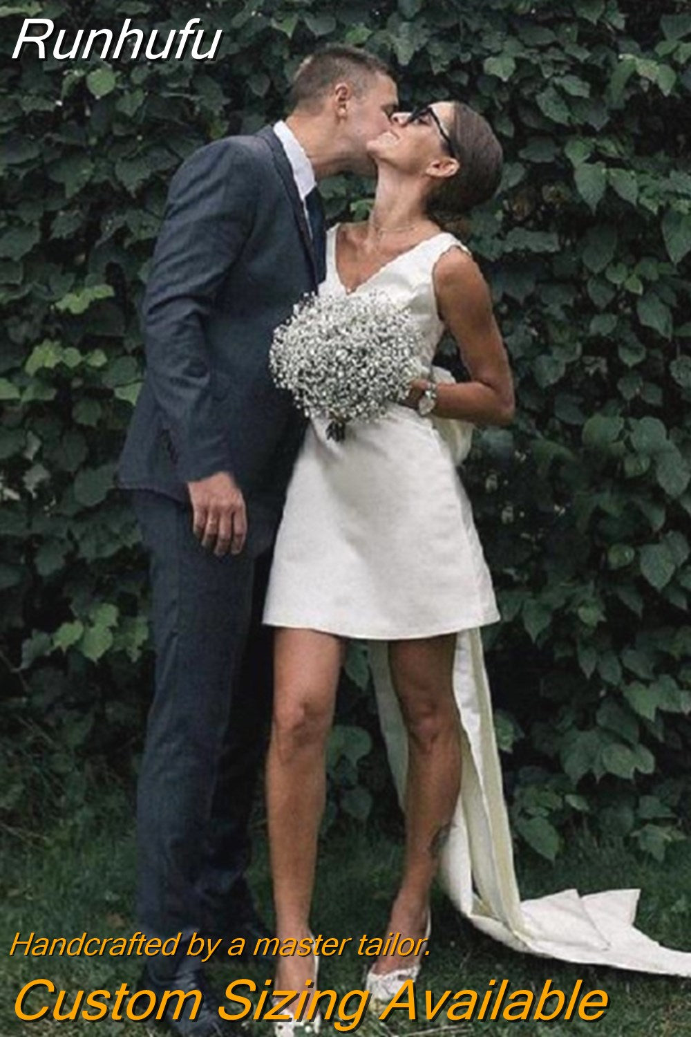 White 2 IN 1 Wedding Dresses Boho Large Bow V Neck Robe De Mariee Short Bridal Gown with Long Detachable Skirt For Bride